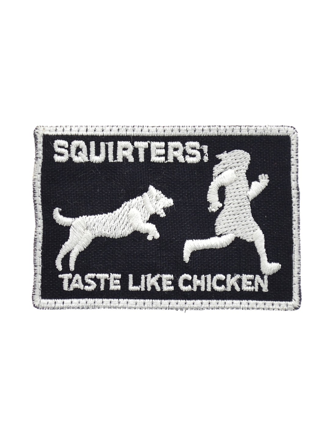 Squirters Taste Like Chicken è una patch realizzata con tecnica di ricamo di alta qualità. E' realizzata con tessuto e filato resistenti e duraturi. Questa tecnica rappresenta la tradizione nel mondo delle patch In tutte le nostre patch viene utilizzato Velcro® originale Velcro® Brand Hook che viene cucito al tessuto per garantire una massima durata nel tempo. Le nostre patch sono dotate di Velcro® maschio nel retro.
