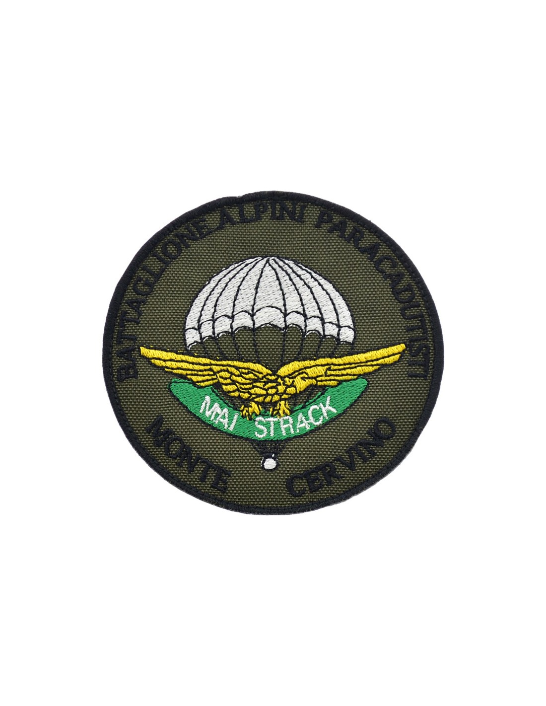 Battaglione Alpini Paracadutisti Montecervino è una patch realizzata con tecnica di ricamo di alta qualità. E' realizzata con tessuto e filato resistenti e duraturi. Questa tecnica rappresenta la tradizione nel mondo delle patch In tutte le nostre patch viene utilizzato Velcro® originale Velcro® Brand Hook che viene cucito al tessuto per garantire una massima durata nel tempo. Le nostre patch sono dotate di Velcro® maschio nel retro.
