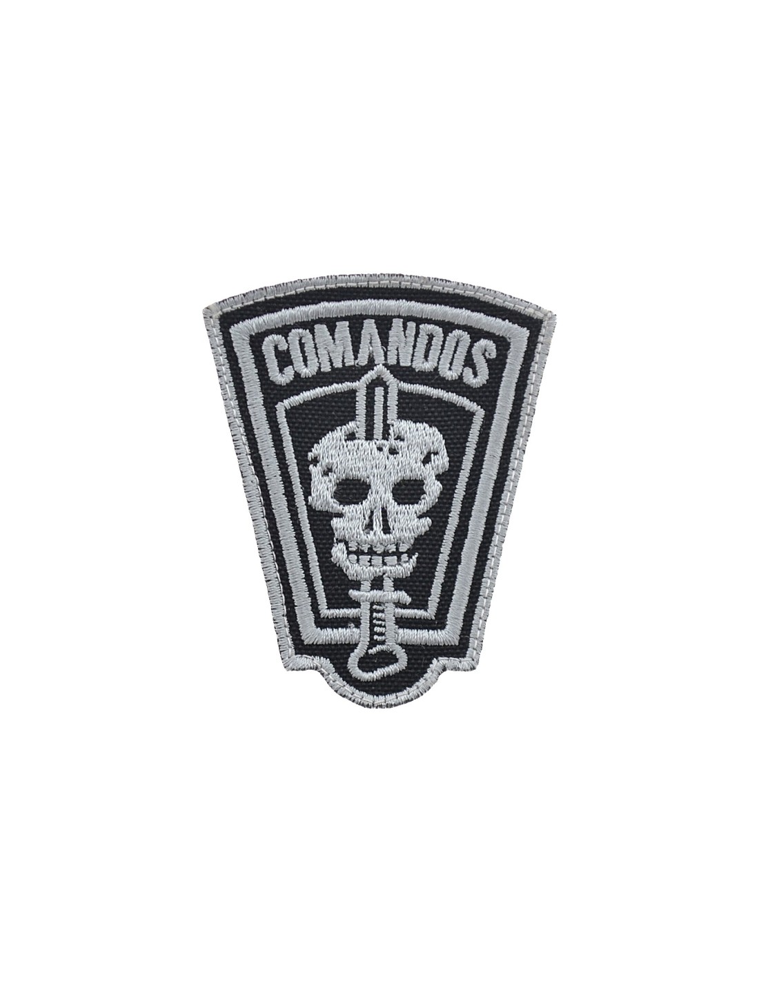 Patch in PVC con Velcro® maschio cucito sul retro.