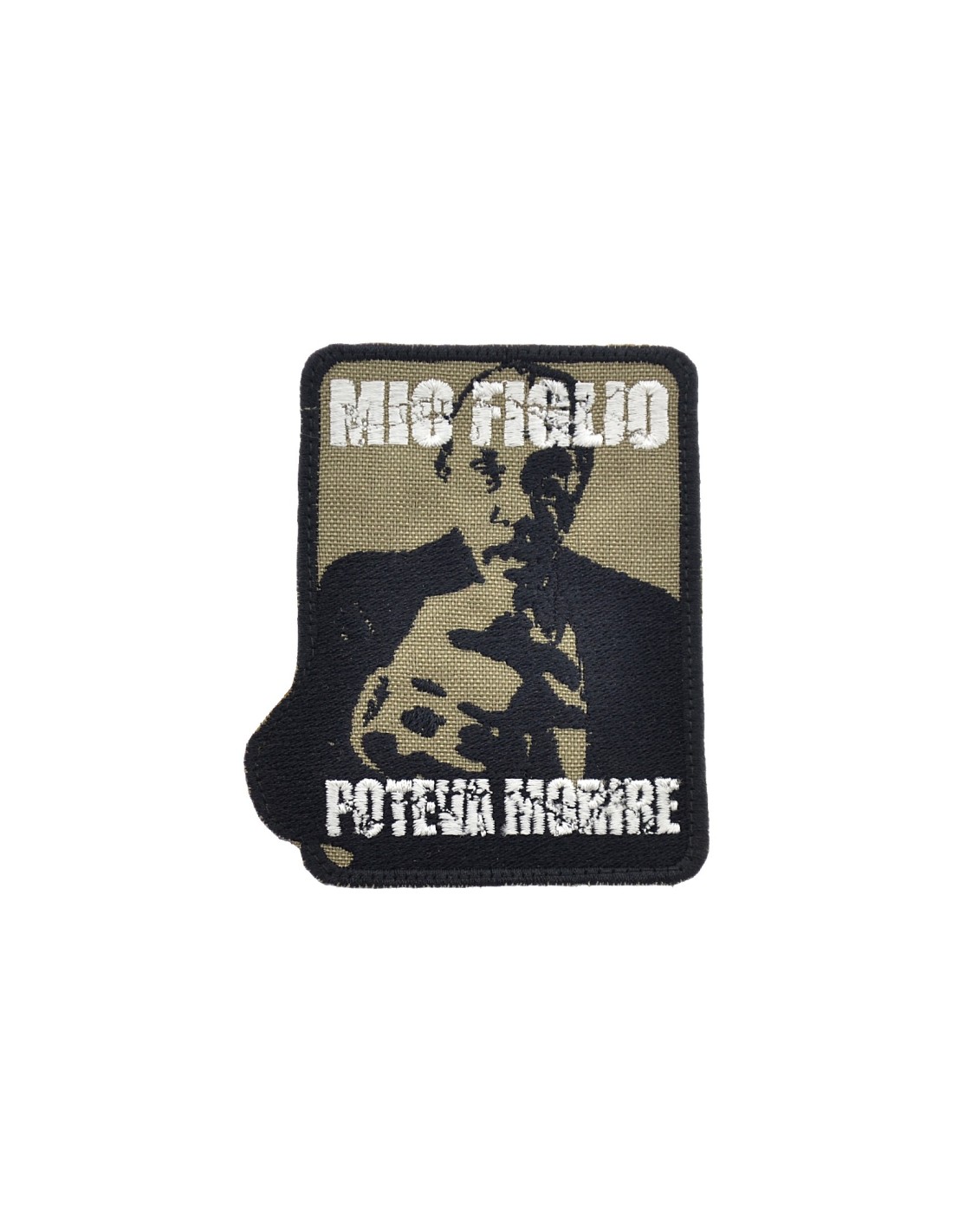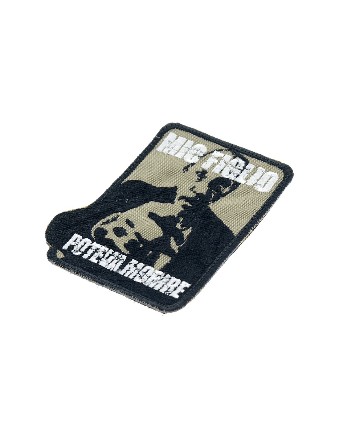 Patch ricamata con Velcro® maschio cucito sul retro.