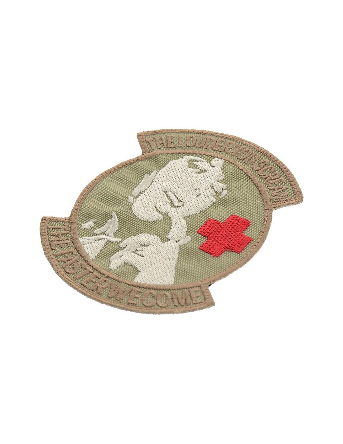 Patch ricamata con Velcro® maschio cucito sul retro.