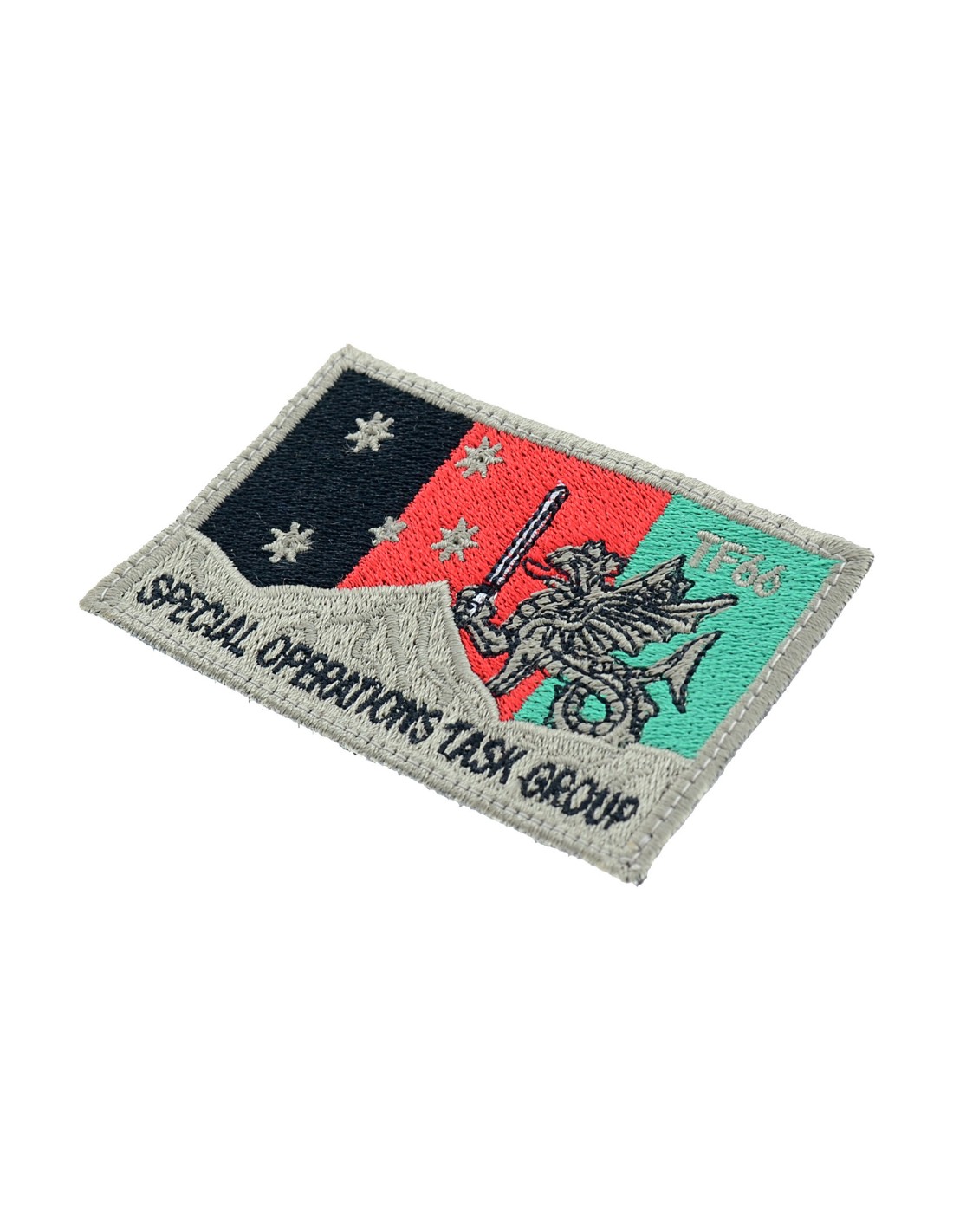 Patch ricamata con Velcro® maschio cucito sul retro.