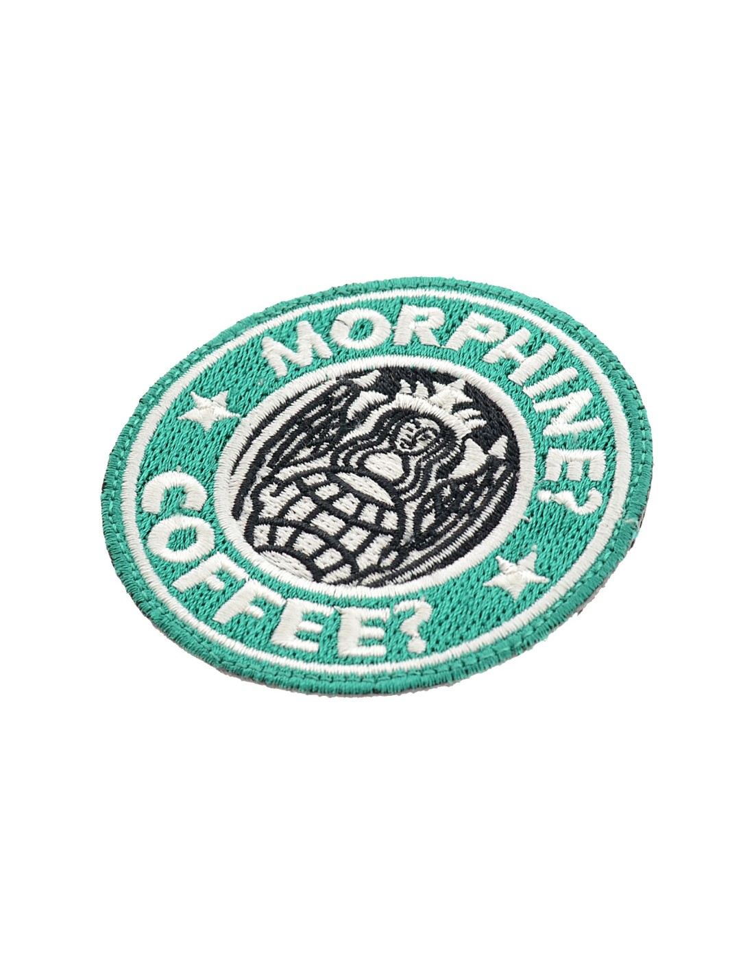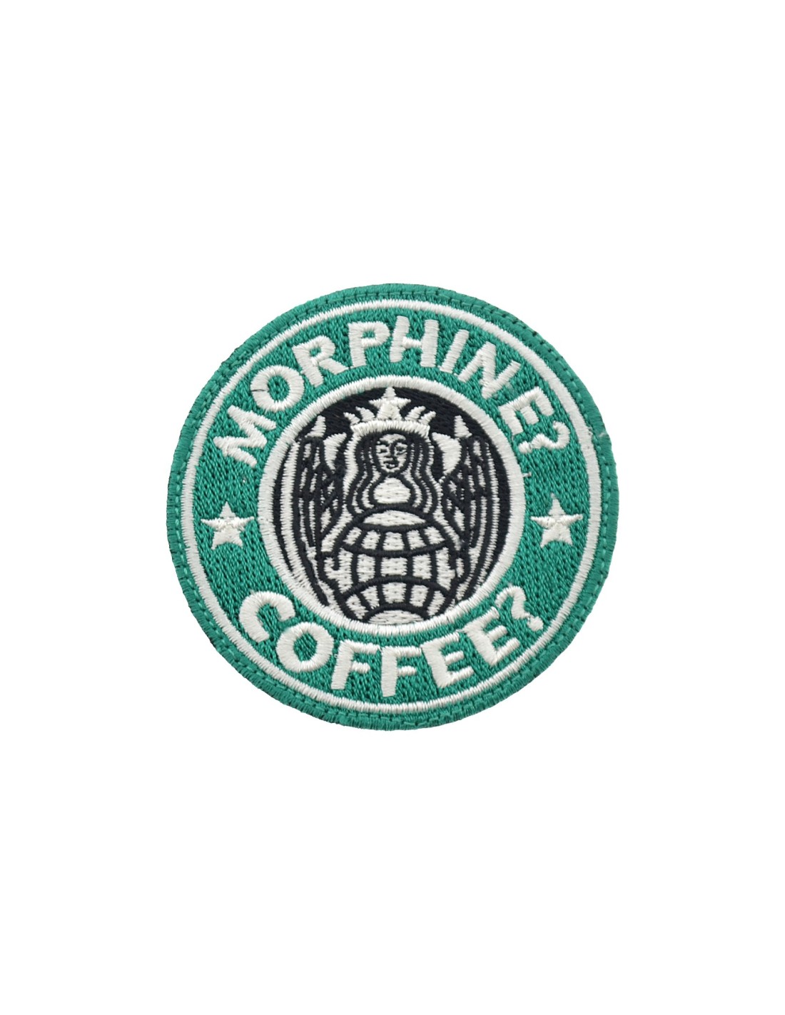 Patch ricamata con Velcro® maschio cucito sul retro.