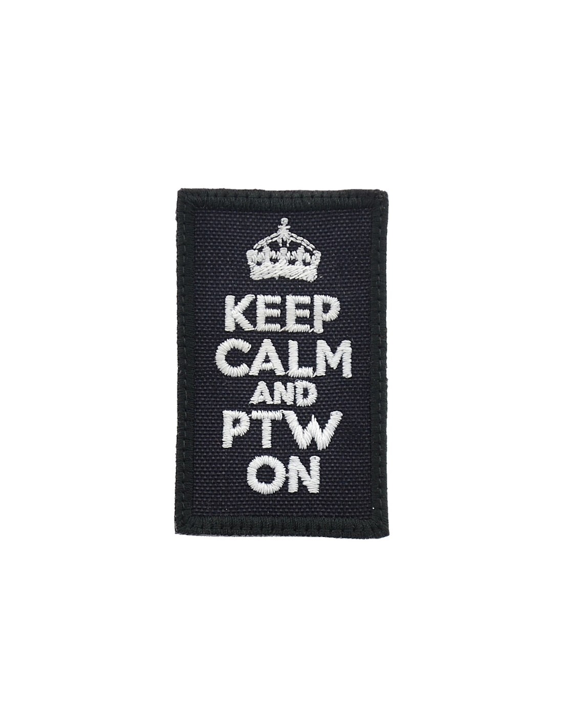 Keep Calm and PTW On è una patch realizzata con tecnica di ricamo di alta qualità. E' realizzata con tessuto e filato resistenti e duraturi. Questa tecnica rappresenta la tradizione nel mondo delle patch In tutte le nostre patch viene utilizzato Velcro® originale Velcro® Brand Hook che viene cucito al tessuto per garantire una massima durata nel tempo. Le nostre patch sono dotate di Velcro® maschio nel retro.