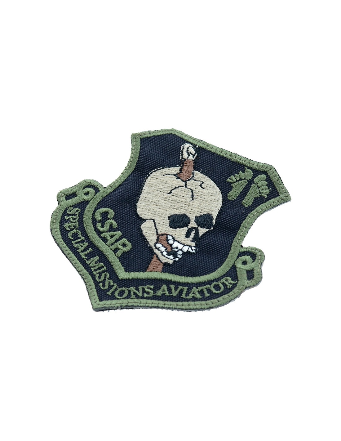 Patch in PVC con Velcro® maschio cucito sul retro.