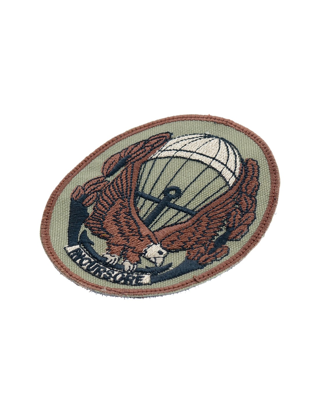 Patch ricamata con Velcro® maschio cucito sul retro.