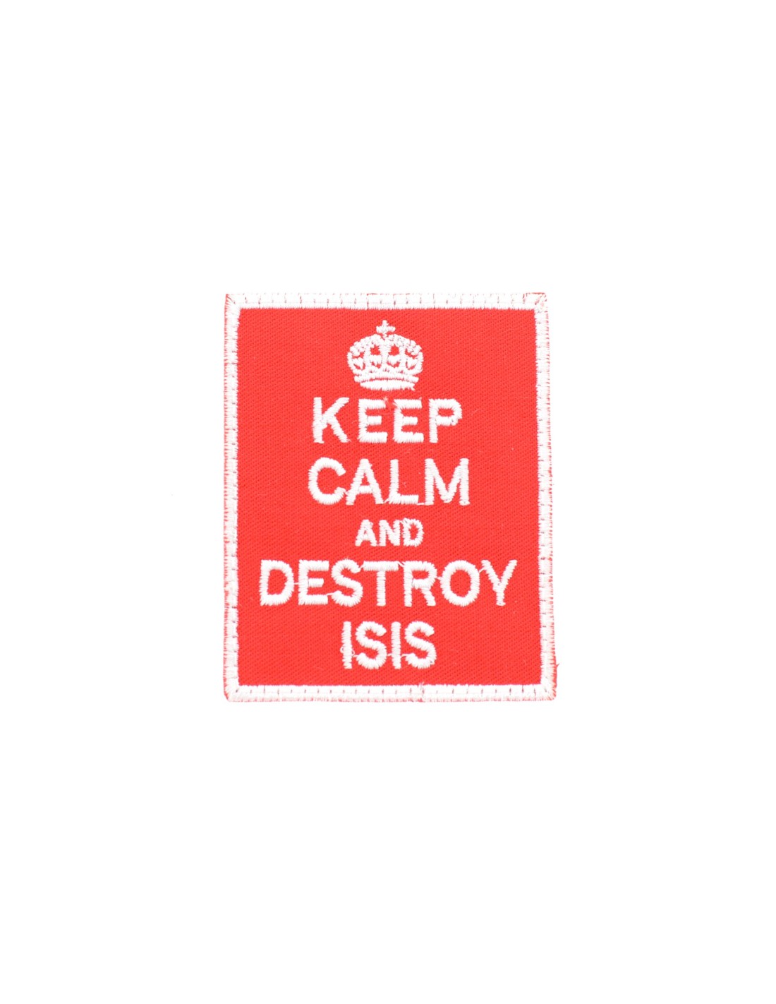 Keep Calm and Destroy Isis è una patch realizzata con tecnica di ricamo di alta qualità. E' realizzata con tessuto e filato resistenti e duraturi. Questa tecnica rappresenta la tradizione nel mondo delle patch In tutte le nostre patch viene utilizzato Velcro® originale Velcro® Brand Hook che viene cucito al tessuto per garantire una massima durata nel tempo. Le nostre patch sono dotate di Velcro® maschio nel retro.