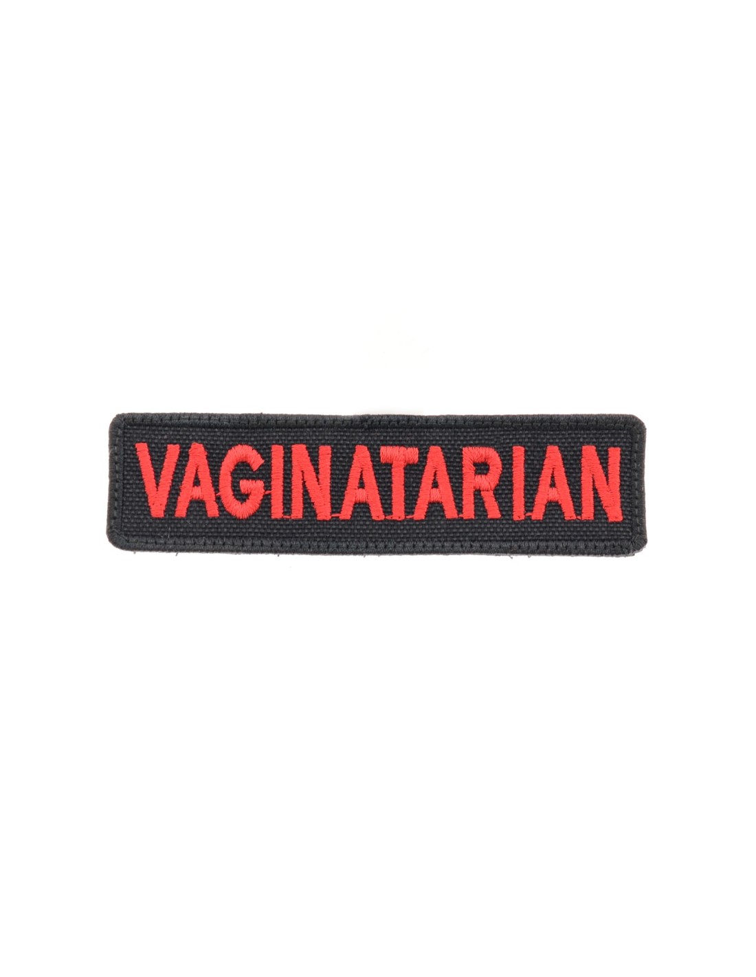 Vaginatarian è una patch realizzata con tecnica di ricamo di alta qualità. E' realizzata con tessuto e filato resistenti e duraturi. Questa tecnica rappresenta la tradizione nel mondo delle patch In tutte le nostre patch viene utilizzato Velcro® originale Velcro® Brand Hook che viene cucito al tessuto per garantire una massima durata nel tempo. Le nostre patch sono dotate di Velcro® maschio nel retro.