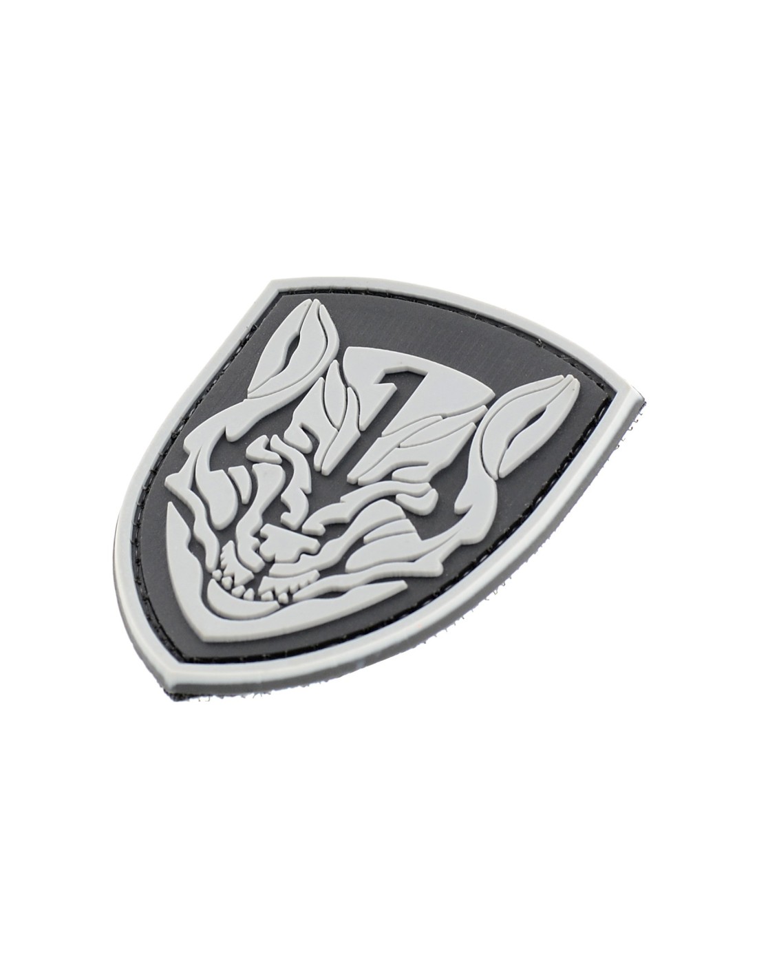 Patch in PVC con Velcro® maschio cucito sul retro.