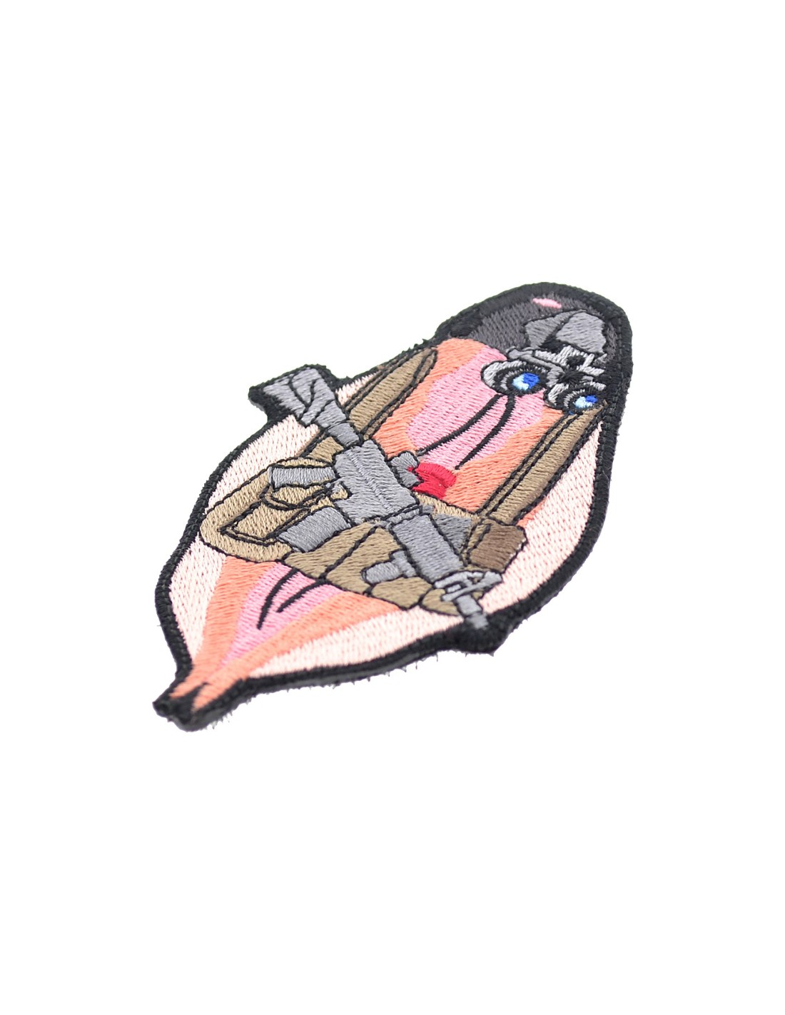 Patch ricamata con Velcro® maschio cucito sul retro.