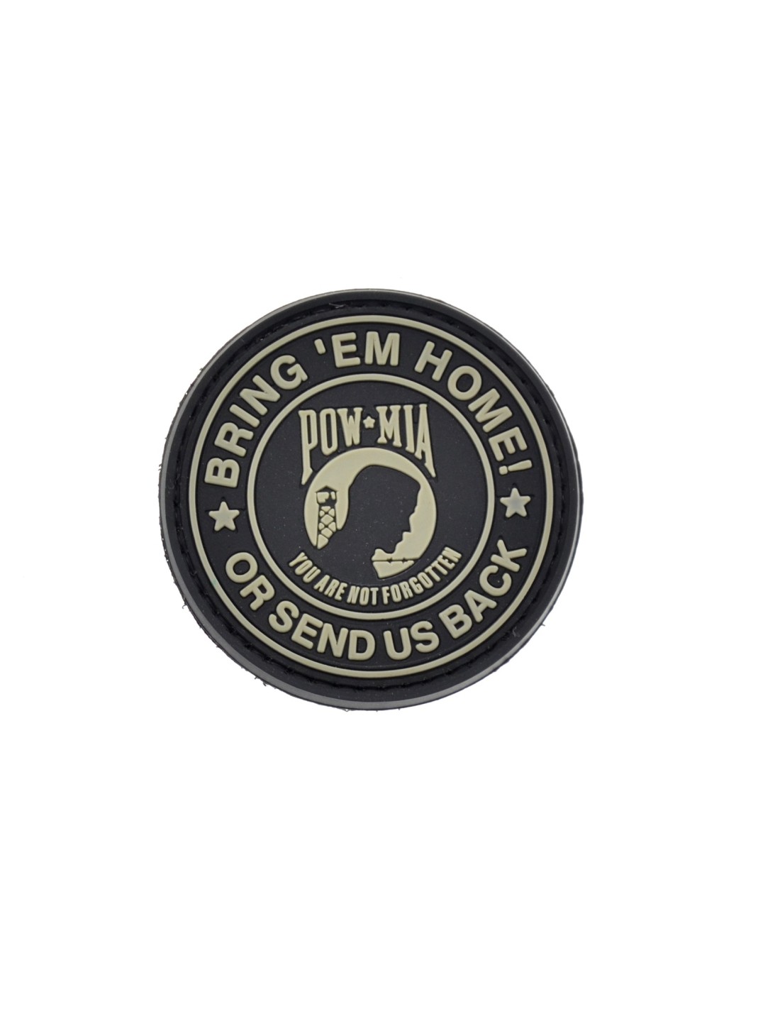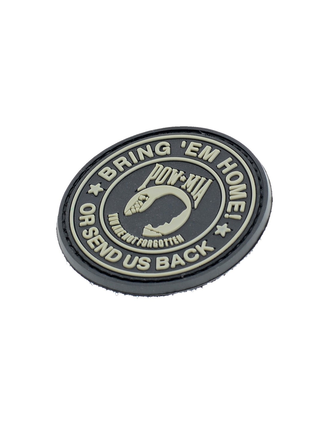 POW MIA Bring'em Home Or Send Us Back è una patch realizzata in PVC di alta qualità, una gomma flessibile e duratura. La patch è realizzata in PVC per poter esprimere al meglio i dettagli del disegno rendendo un effetto 3D mai visto prima. In tutte le nostre patch viene utilizzato Velcro® originale Velcro® Brand Hook che viene cucito al PVC per garantire una massima durata nel tempo. Le nostre patch sono dotate di Velcro® maschio nel retro.