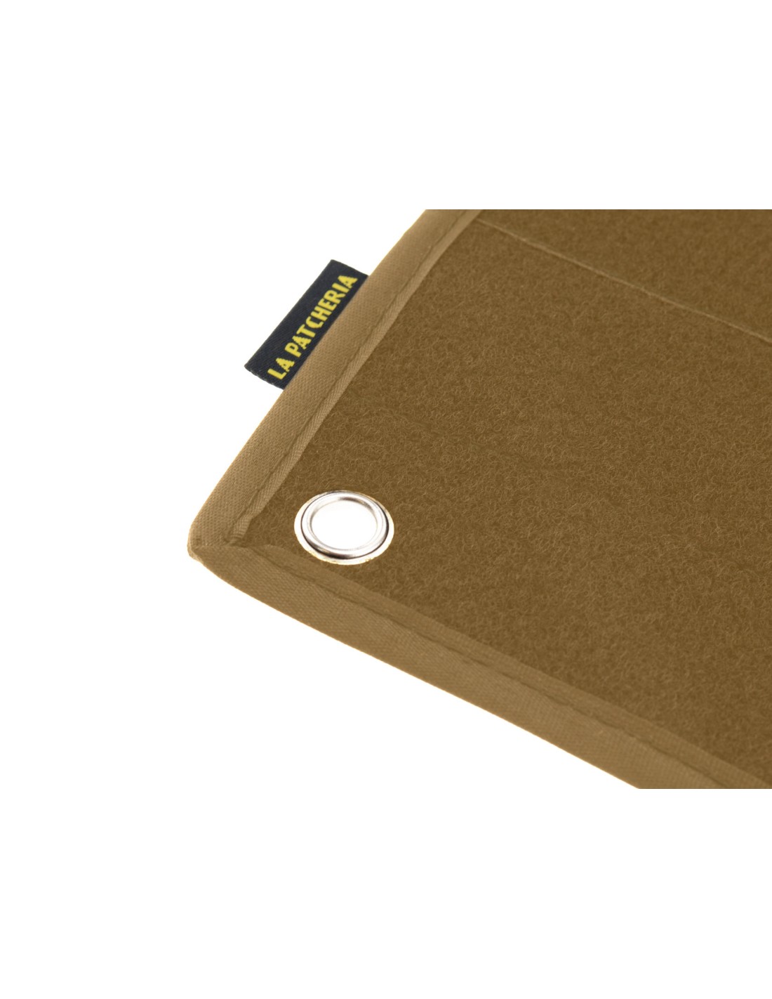Pannello realizzato con fasce di velcro femmina alte 9 cm di colore tan cucite assieme.