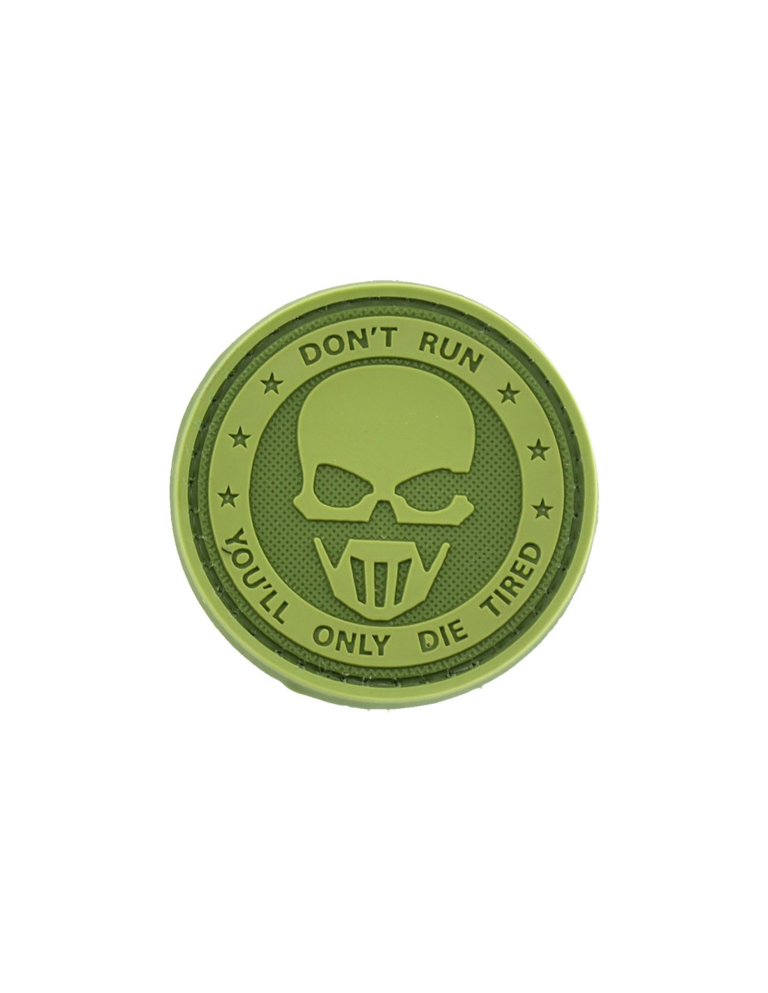 Don't Run You'll Only Die Tired è una patch realizzata in PVC di alta qualità, una gomma flessibile e duratura. La patch è realizzata in PVC per poter esprimere al meglio i dettagli del disegno rendendo un effetto 3D mai visto prima. In tutte le nostre patch viene utilizzato Velcro® originale Velcro® Brand Hook che viene cucito al PVC per garantire una massima durata nel tempo. Le nostre patch sono dotate di Velcro® maschio nel retro.