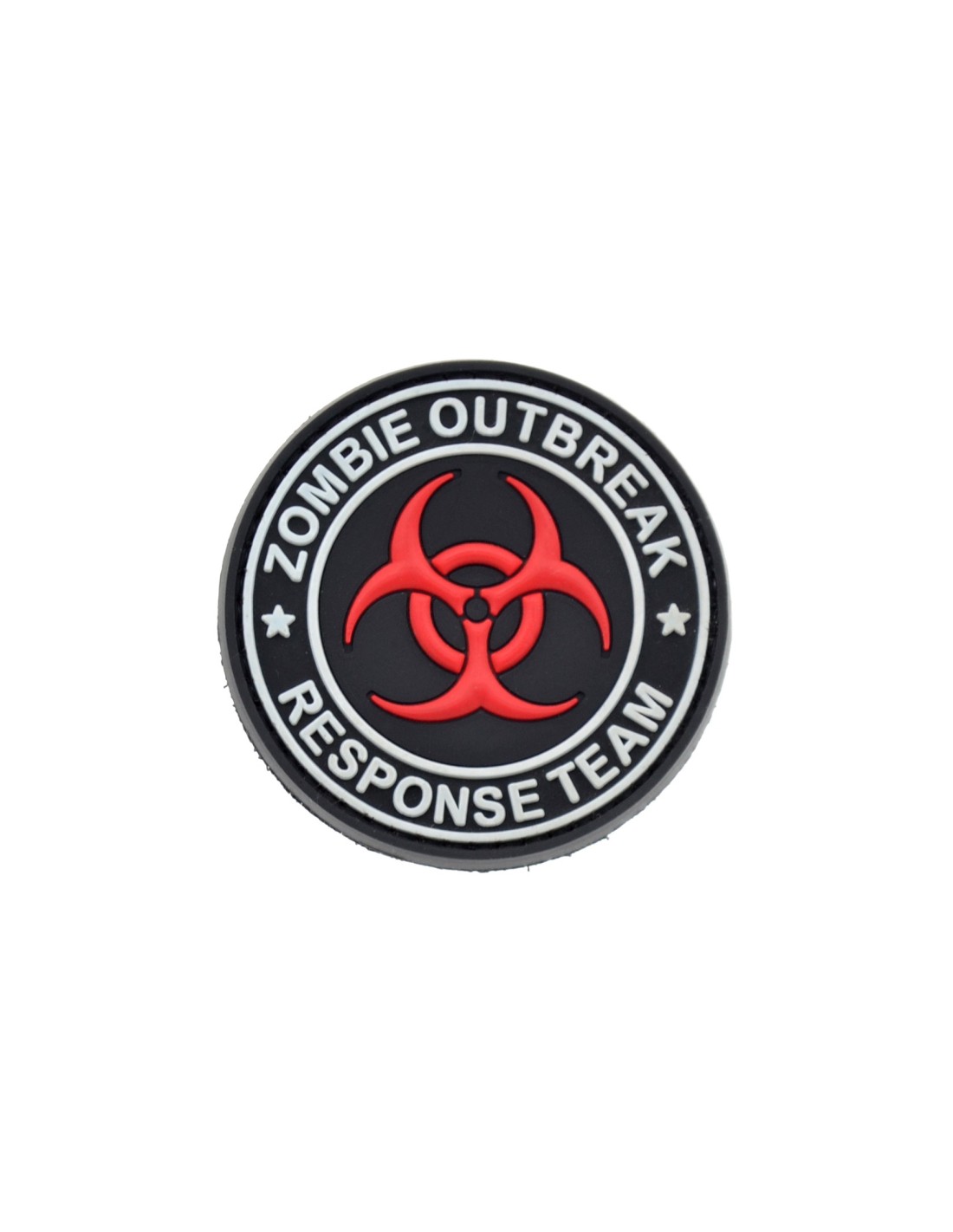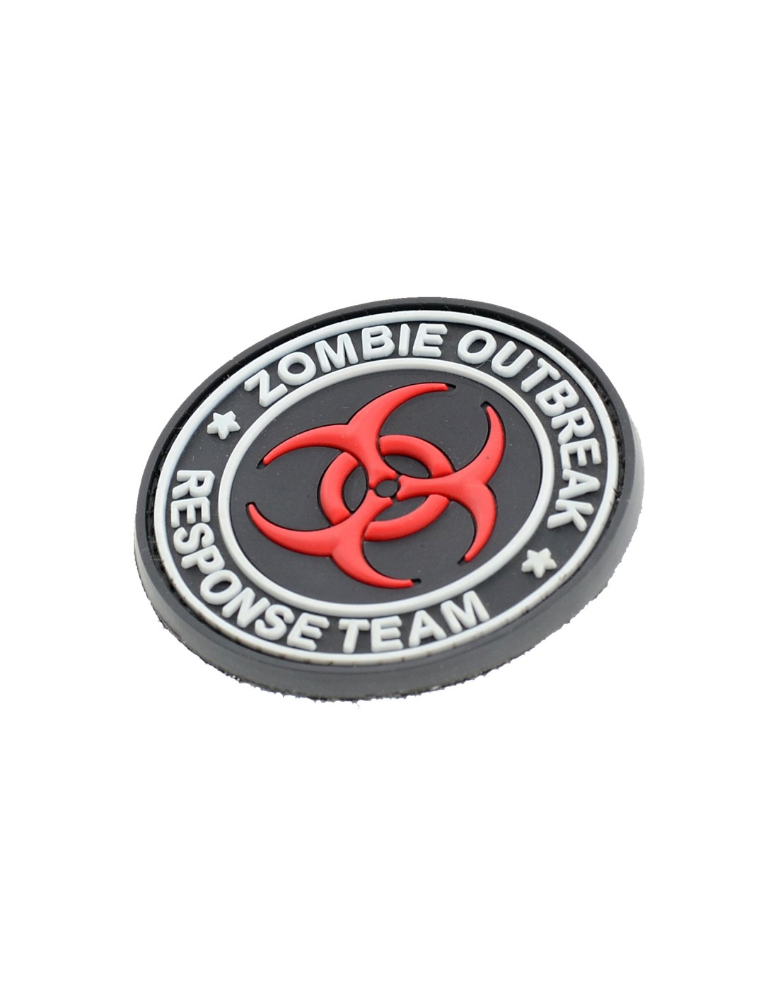 Patch in PVC con Velcro® maschio cucito sul retro.