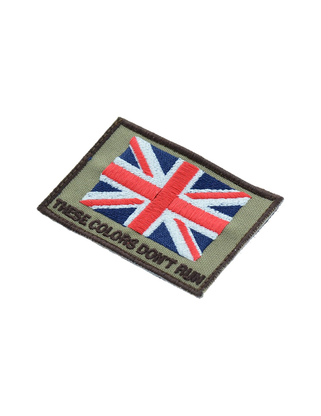 UK These Colors Don't Run Flag is an high quality embroidered patch. It is made with durable and strong fabric and threads. This kind of manufacture represents the tradition of patch All our patches have original Velcro® Brand Hook sew on backing for maximum stability and durability. All our patches have Velcro® backing.