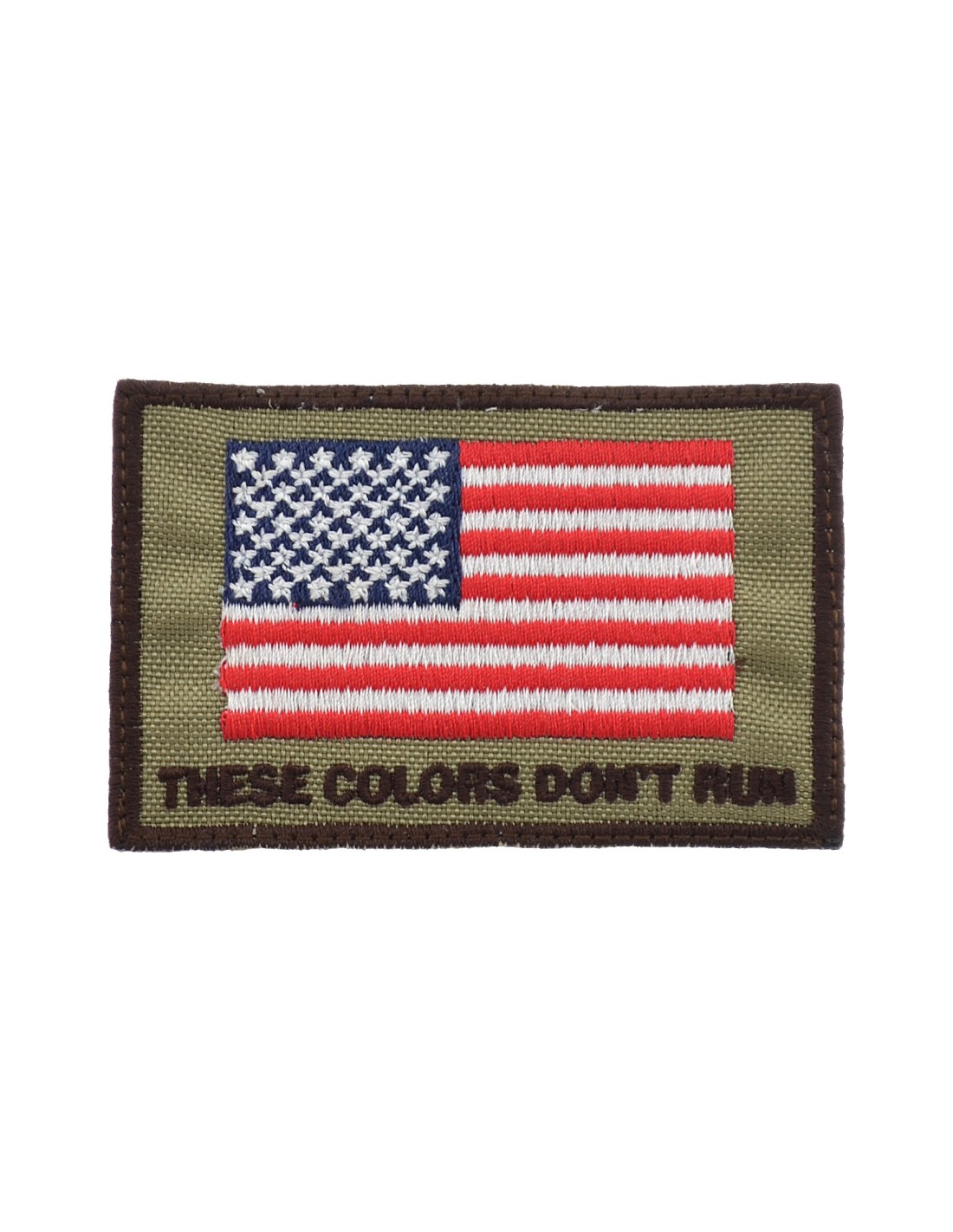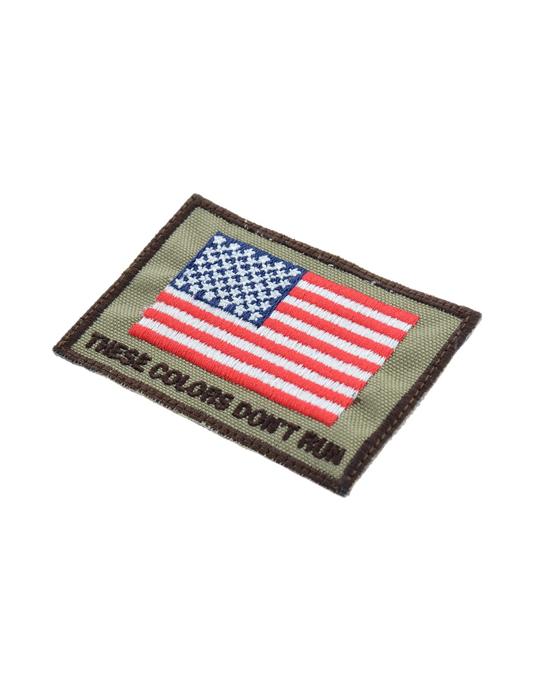 USA These Colors Don't Run Flag is an high quality embroidered patch. It is made with durable and strong fabric and threads. This kind of manufacture represents the tradition of patch All our patches have original Velcro® Brand Hook sew on backing for maximum stability and durability. All our patches have Velcro® backing.