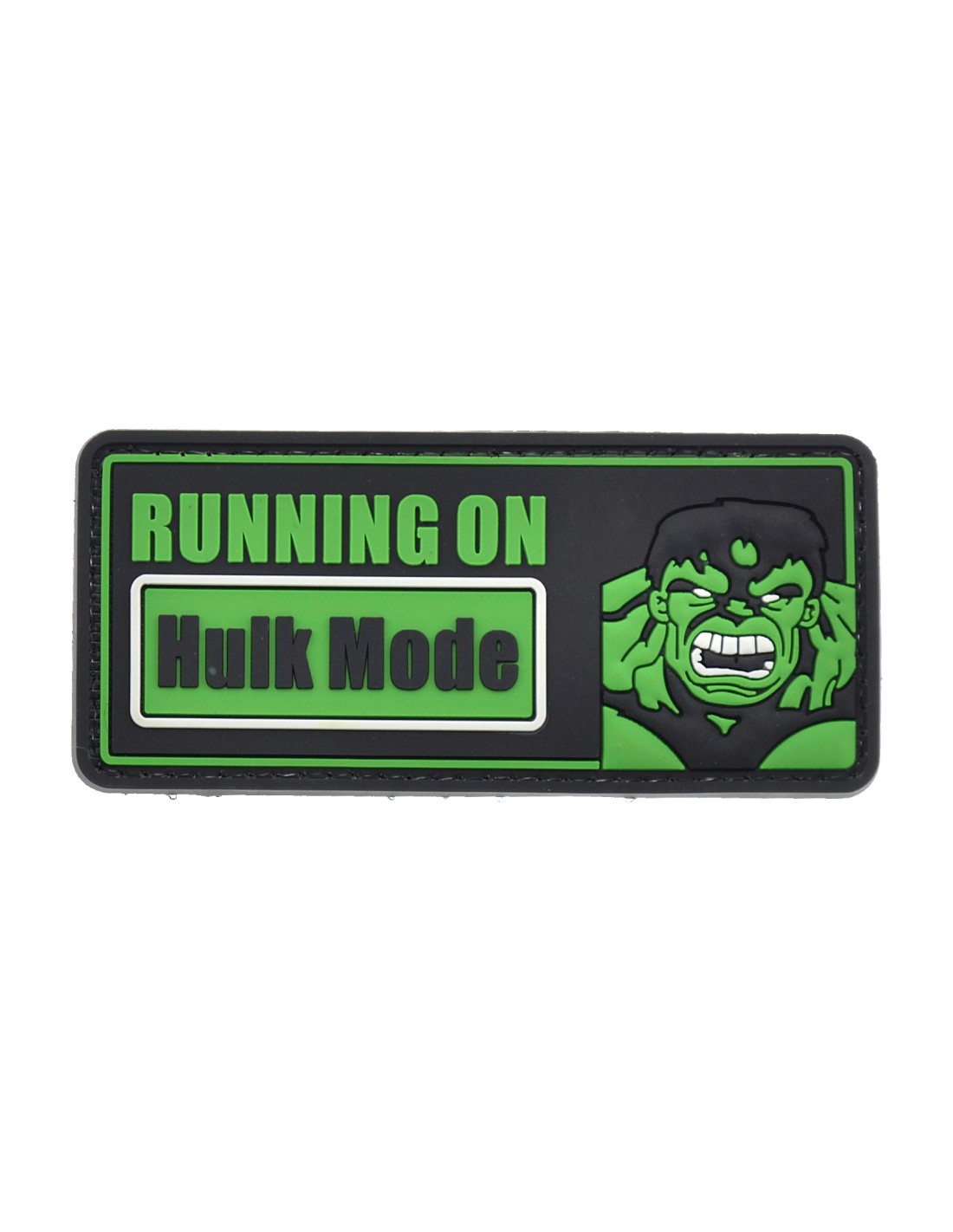 Hulk Mode - Running ON is an high quality PVC patch made with a durable and flexibile rubber. The patch is made of PVC to best express details and for a 3D effect never seen before. All our patches have original Velcro® Brand Hook sew on backing for maximum stability and durability. All our patches have Velcro® backing.