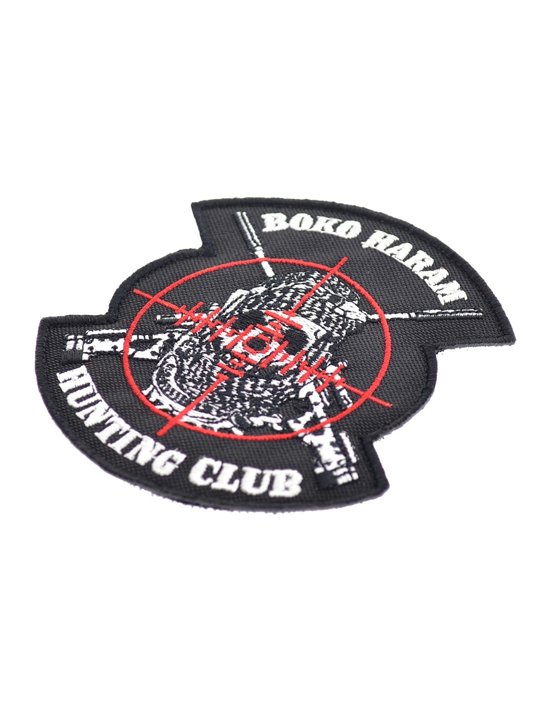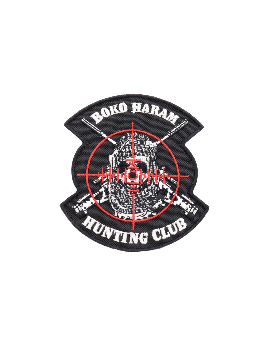 Boko Haram Hunting Club is an high quality embroidered patch. It is made with durable and strong fabric and threads. This kind of manufacture represents the tradition of patch All our patches have original Velcro® Brand Hook sew on backing for maximum stability and durability. All our patches have Velcro® backing.